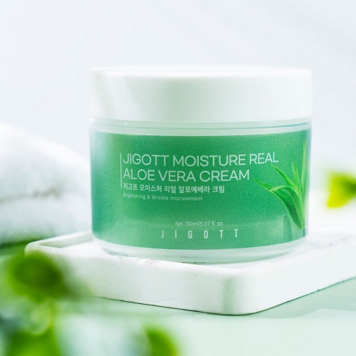 Jigott Aloe Vera Soothing Cream — Moisture Barrier + Calming — Aloe Vera Leaf Extract + Niacinamide — Wholesale K-Beauty