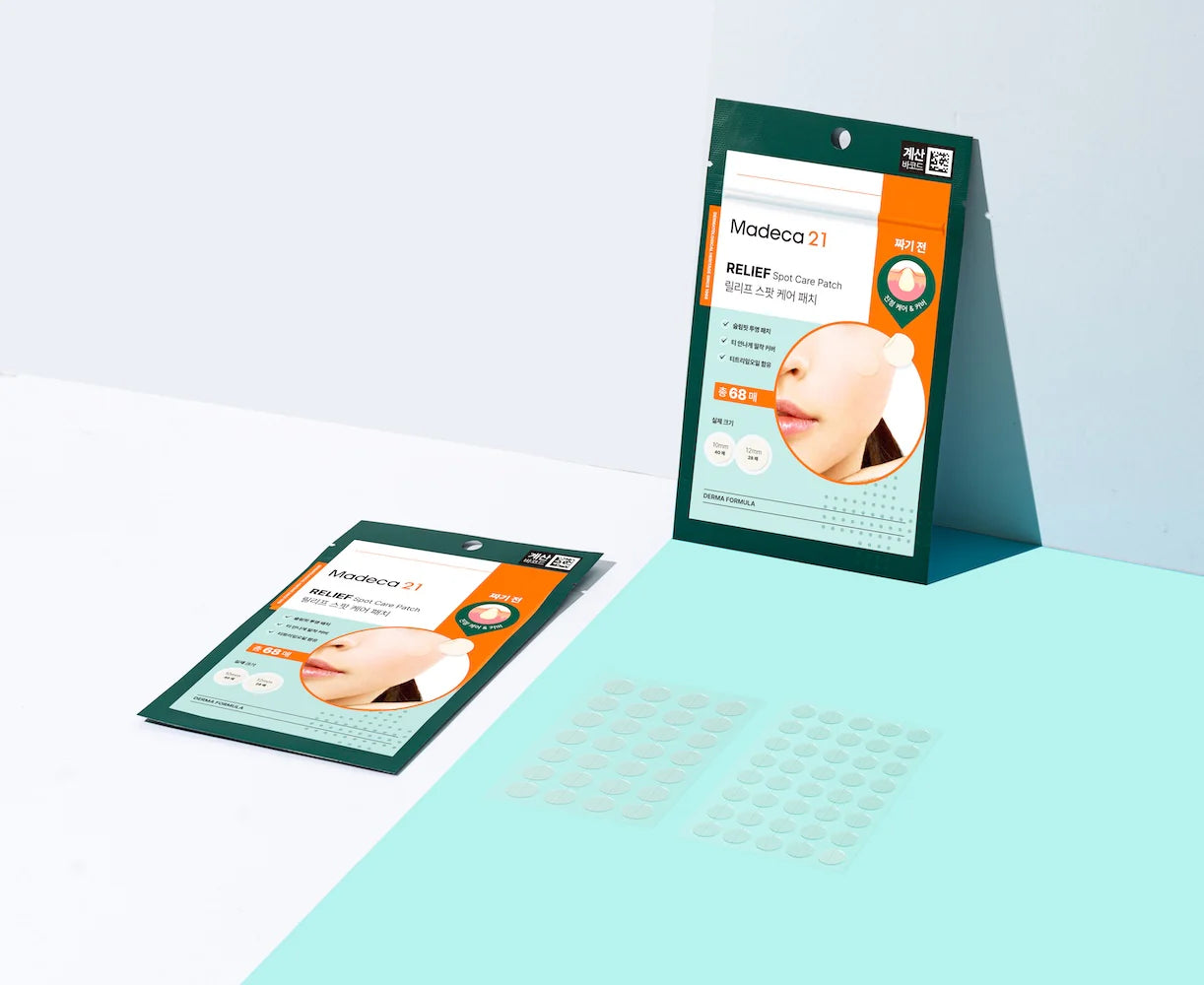 Madeca21 Relief Spot Care Patch is a thin, transparent hydrocolloid patch formulated to calm early-stage breakouts while protecting irritated skin. Designed for discreet daily wear, this 68-count value pack is ideal for beauty supply stores, salons, and skincare-focused retailers looking for high-repeat spot care items in the U.S. K-Beauty market.